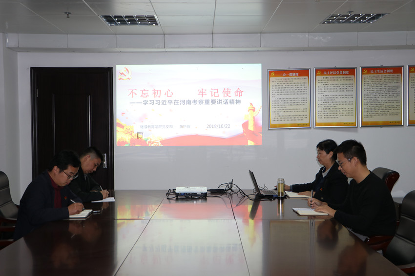 会上,继续教育学院全体党员纷纷就学习习近平在河南考察重要讲话精神作了讨论交流。