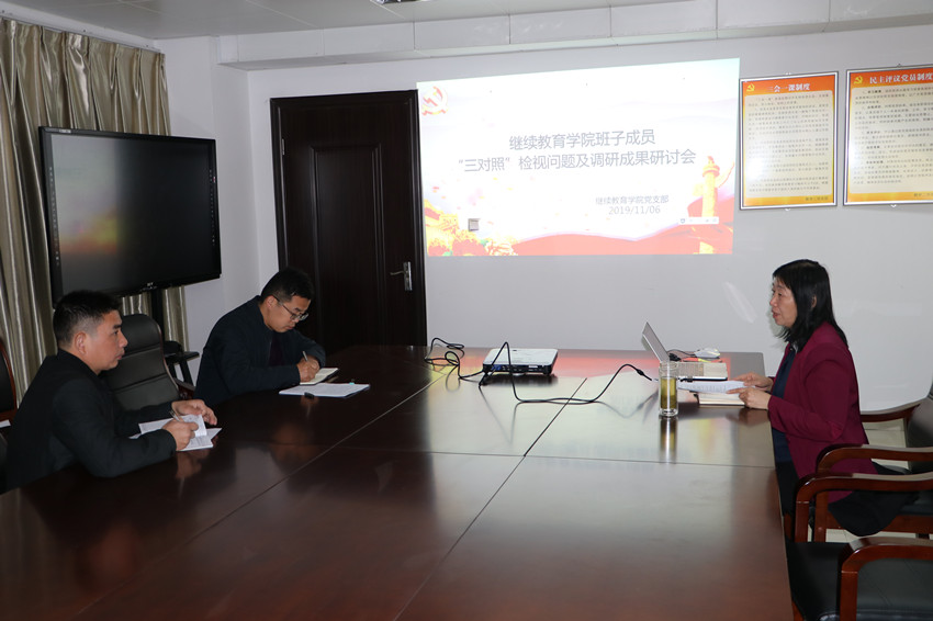 11月6日下午,继续教育学院党支部召开班子成员“三对照”检视问题及调研成果研讨会。会议由黄艳霞主持。