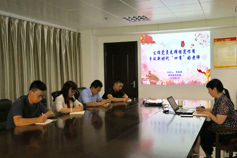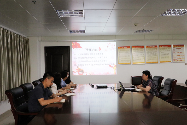 6月19日,继续教育学院开展了主题党日活动。继续教育学院院长黄艳霞在行政楼第五会议室作了一场题为《发挥党员先锋模范作用 争做新时代“四有”好老师》的主题党课,继续教育学院全体党员参加聆听。