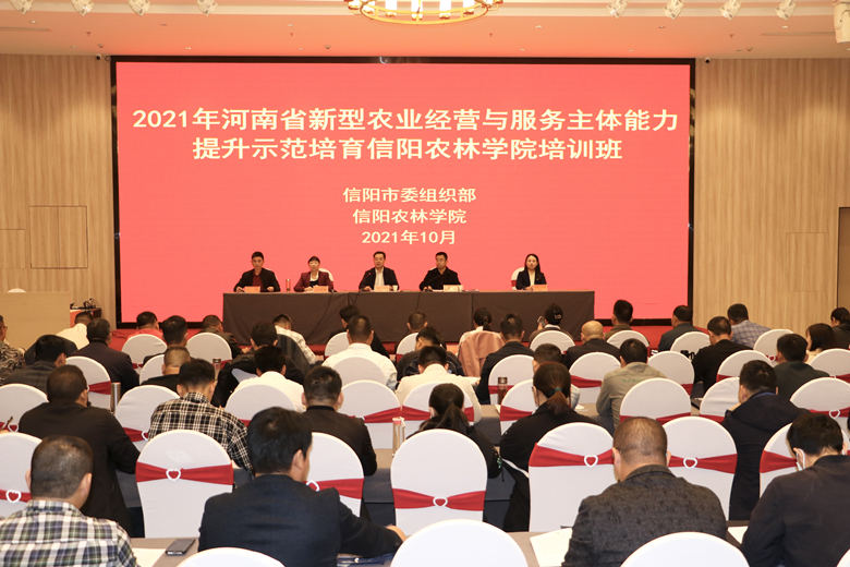 10月14日上午,由beat365在线平台官网和信阳市委组织部联合举办的2021年河南省新型农业经营与服务主体能力提升示范培育高素质农民培训班在beat365在线平台官网开班。beat365在线平台官网副校长文宗锋、信阳市委组织部副部长谢焕格、beat365在线平台官网继续教育学院院长黄艳霞、信阳市委组织部党员教育科科长厉励出席开班仪式,信阳市各县区种植养殖大户、合作社、家庭农场技术骨干以及部分村社区基层干部等共计100余人参加了开班仪式。