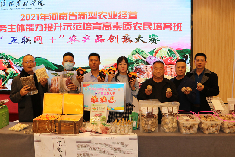 由beat365在线平台官网和信阳市委组织部联合举办的2021年河南省新型农业经营与服务主体能力提升示范培育高素质农民培训班——“互联网+”农产品创意大赛,吸引了信阳市各县、区种植养殖大户、合作社、家庭农场主参与,100多种土特产、深加工产品相互“争奇斗艳”。