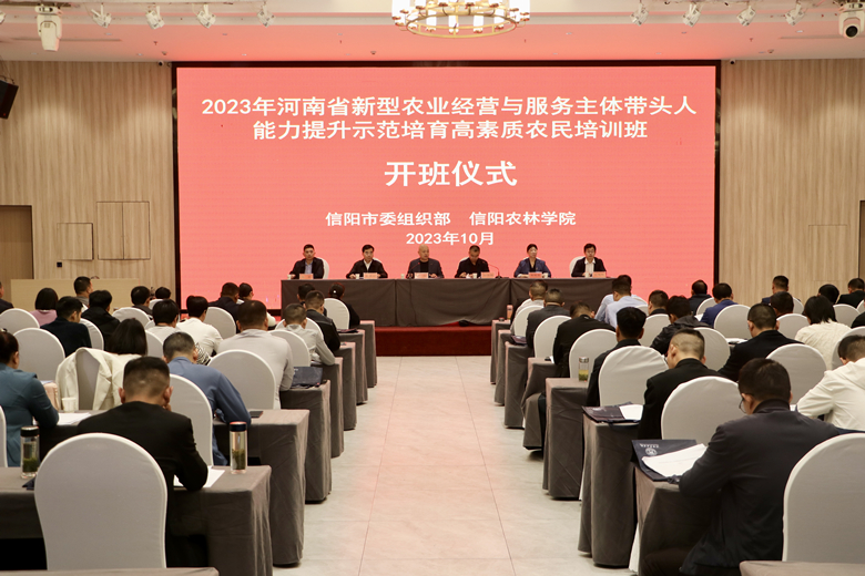 为加快农村产业发展带头人队伍建设,助推“五星”支部创建、打造“三个培养”,着力培养造就一支有文化、懂技术善经营、会管理的农民队伍,夯实农村基层战斗堡垒,为实施乡村振兴提供组织支撑和人力支撑,10月13日上午,由beat365在线平台官网和信阳市委组织部联合举办的2023年河南省新型农业经营与服务主体能力提升示范培育高素质农民培训班在beat365在线平台官网开班。信阳市各县区种植大户、合作社、家庭农场技术骨干以及部分村社区基层干部等100余人参加。