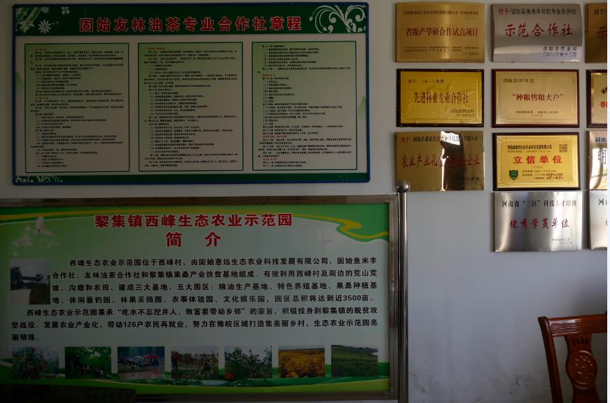 目前,黎集镇西峰村的在建新型现代农业科技示范园区初具规模,现已发展成为注册资金2000万元,面积近5000亩,带动周边600户农民增收致富的综合性大农业产业示范园区。园区正按照规划设计的“三大基地、五大园区”发展思路和阶段目标,以油茶间作套种、生态农业种植、脱毒红薯栽培、精品花卉苗本、规模化畜禽养殖、农机服务、烟叶种植、光伏发电、农村电商等产业示范为依托,融合发展成为集创业苗圃、乡村企业孵化、劳务招商服务、创业人才培训、扶贫投融资等功能为一体的综合性现代农业创新创业服务示范园区;为创建美丽乡村做出了积极地探索和先行示范。