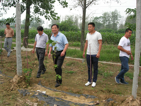 20158月17日 ,扶庆副校长带领教务处处长陈斌教授、科技处处长赵聘教授以及园艺、植保、水产养殖、茶学等相关专业教师,赴息县鑫晨农业科技发展有限公司,亲临公司的葡萄园、桃园、黄瓜园等生产基地现场指导。