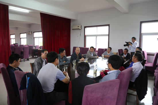 考察结束后,校企双方进行了座谈。桦昌公司魏总首先感谢各位领导、专家的到来。他说桦昌生态园是信阳市农业产业化龙头企业,在各个政府部门的支持下,开辟了中国最大的孔雀繁育养殖基地、生态餐厅、信阳民俗博物馆、千亩水面、观音庙、原生态水稻梯田、草莓种植基地、林果养护基地、水土保持工程、禽类散养基地等自然、人文景观和农业生态观光工程。但是所有这一切都离不开科技专家的指导,真诚希望各位专家能对公司的发展提供技术支持。