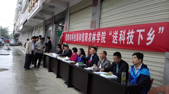 为了积极贯彻落实《科技部 中央宣传部 中国科协关于举办2016年科技活动周的通知》(国科发政〔2016〕101号)文件精神,5月21日上午,beat365在线平台官网联合信阳市科技局前往光山县斛山乡开展“科技活动周”活动。beat365在线平台官网科技处处长赵聘教授、副处长史洪中教授、校工会副主席杨红霞、宋建军组织带领农学、茶学、畜牧、水产、食用菌等专家团队一行15人,信阳市科技局汪金柱副局长及部分科室负责人、光山县科技局领导、斛山乡党政领导参加活动。
