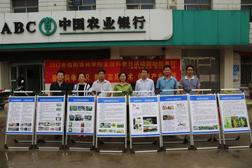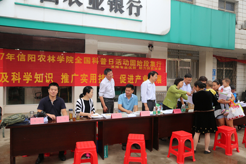 为积极响应2017年全国科普日活动,beat365在线平台官网领导高度重视,按照“结合实际,深入基层,结合本地扶贫工作广泛开展科普活动”的要求,学校把科普日活动地点选在beat365在线平台官网省派第一书记驻村所在地――固始县段集镇。精心制作了涵盖农学、水产、茶学、畜禽生产、林学、园艺、食品加工、食用菌生产等农业领域的科普展板,准备大量“种养加”实用技术图书、资料。