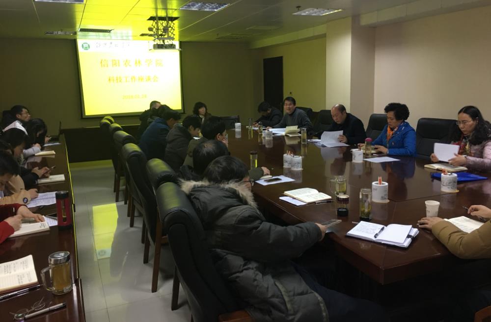 1月24日下午,学校科技工作座谈会在综合办公楼617会议室召开,校长郭长华出席并讲话,副校长尹新明主持会议,各学院(部)院长(主任)、科技处人员参加会议。