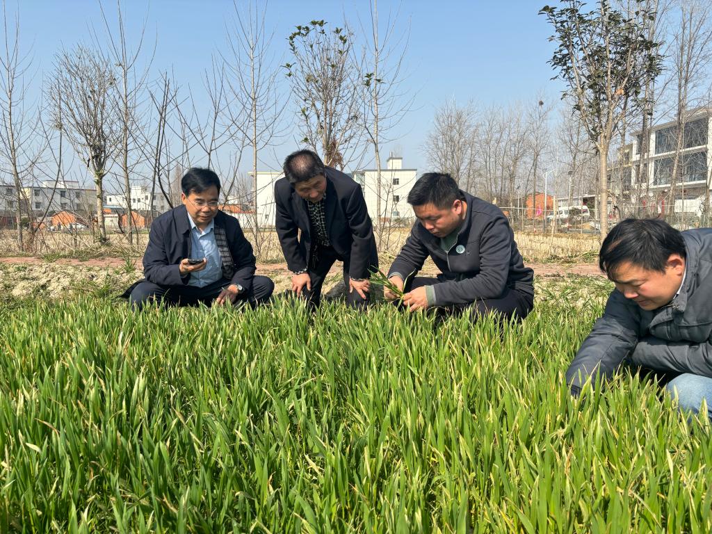 服务队一行先后实地查看了光山县盛世源农机专业合作社,光山县青龙河土地信用专业合作社的冬小麦生长情况。针对当前及今后一段时期如何加强小麦的田间管理,服务队提出了3条建议,一是要加强田间水分管理。由于前期雨雪天气较多,对积水严重的部分田块,要及时做好排水工作,提高地温;二是要加强养分管理。在气温稳定升高后,可每亩追施8公斤左右的尿素,促进苗情转化;三是要做好化除工作。趁小麦进入拔节期前,可采用唑啉草酯、啶磺草胺、氯氟吡氧乙酸等药剂进行除草。在光山县青龙河土地信用专业合作社,服务队一行还对该合作社正在进行的再生稻流水线育秧现场进行了指导,同时服务队还叮嘱合作社负责人由于当前气温波动比较大,一定要注意育秧棚温度稳定,避免高温烧苗和低温冷害,给生产造成不必要的损失。
