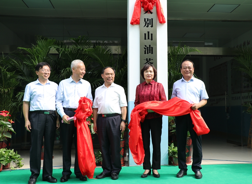 最后,陈延虎、胡亚才、陈豫、邢勇共同为大别山油茶学院揭牌。