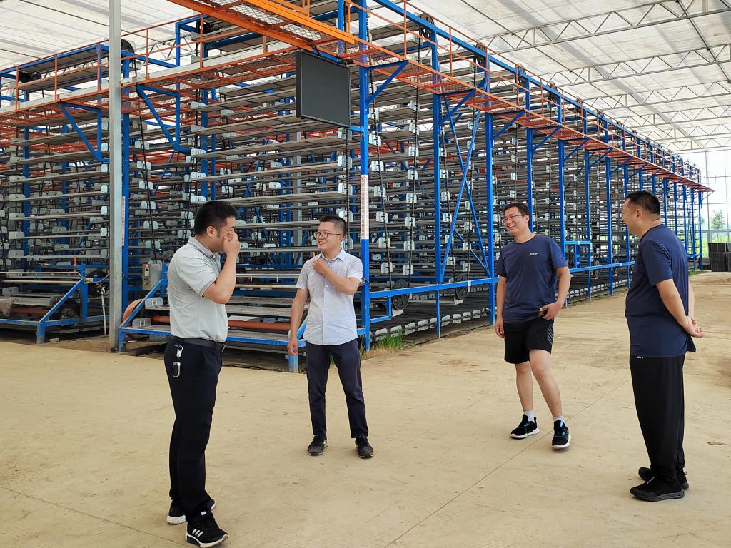 在河南农业大学彭廷教授的陪同讲解下,团队成员一行参观了河南农业大学与国家级生态养殖示范场河南富仁辉实业有限公司共建的“粮饲双优”循环农业试验基地。该模式是由河南农业大学水稻科技创新团队开展的“水稻全株青贮+再生稻高产栽培”新型再生稻试验示范项目,不仅可以增加优质稻米供给,还能为草食动物提供优质饲草。在试验田中,团队成员与彭廷教授深入交流了“粮饲双优”再生稻的品种选择、刈割时期、肥料施用和有机肥替代比例等试验技术。据彭教授介绍,2021年,试验田已实现亩产再生稻谷566.6公斤,亩产青贮饲草3640公斤,基本实现了一种双收、优质高效的试验示范目标。随后,团队成员又参观了大型智能化育秧工厂。
