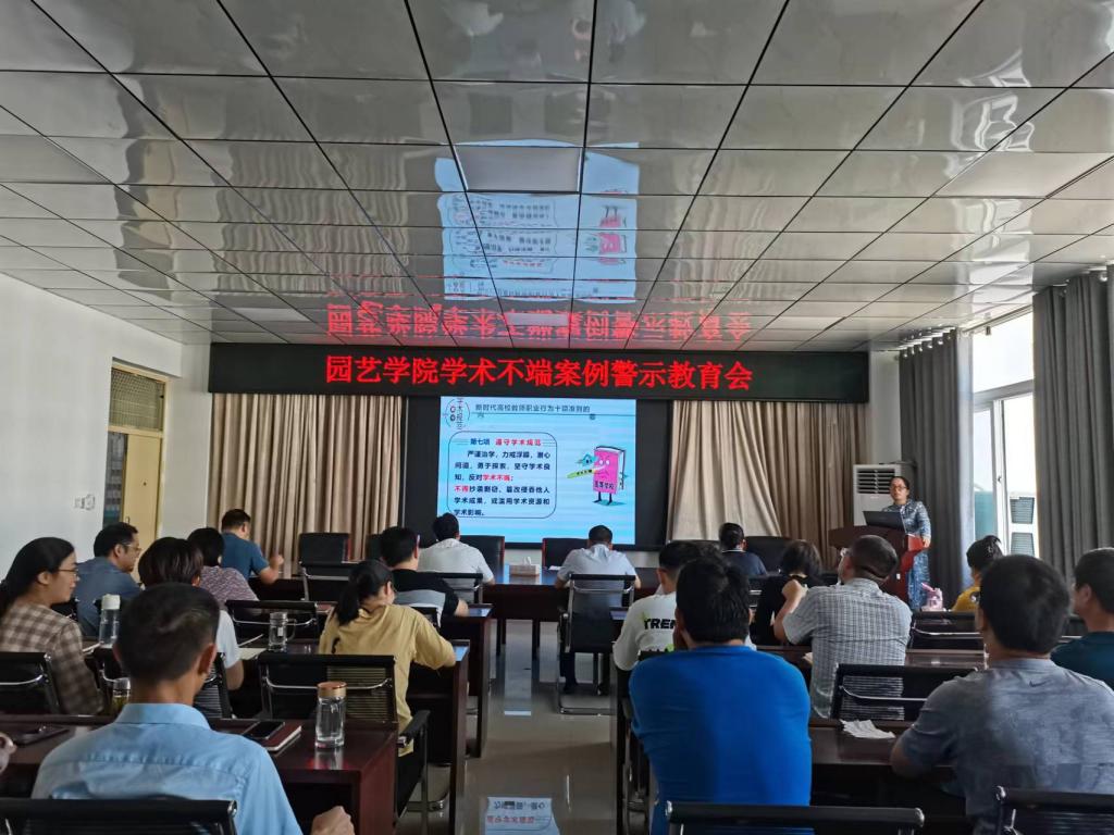 为提高学院全体教职工学术诚信意识,加强学术道德建设、规范学术行为,园艺学院于9月6日在会议室322举办了学术不端典型案例警示教育会。会议由副院长何晖主持,全院教师参加会议。