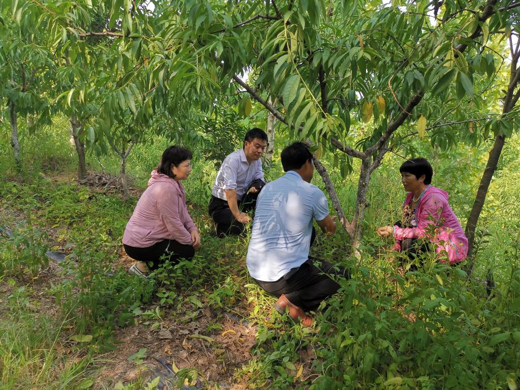在光山观五枚小杂果专业合作社,服务队成员查看了桃树的夏季生长状况和病害发生情况。发现桃树的流胶病发生比较严重,服务队成员对桃树的流胶病的防治技术进行了指导,并针对桃树明年的优质丰产以及如何进行桃树的秋季修剪、施肥管理进行了具体深入的交流,合作社负责人表示在具体实施季节希望科技人员进行现场指导。