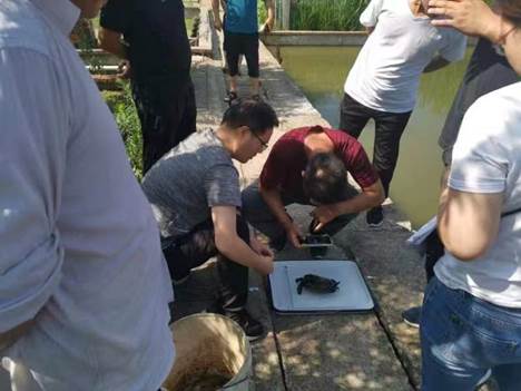 2022年6月27-28日,豫南地区水产种质资源普查第三小组成员伦峰、林伟、黄荣静、雷宇杰、姜汉军老师到浉河区息县张陶鑫源水产养殖场、息县长陵立山农业专业合作社、罗山县品农家庭农场、罗山县正旺家庭农场、罗山县开新渔场开展大鳄龟、翘嘴鳜“广清1号”、彭泽鲫、高背鲫、黑尾近红鲌的系统调查工作。当天空气闷热,调查中突降暴雨,在罗山县和息县水产工作者与当地养殖户的积极配合下,克服天气不利因素,满足了调查物种的充足供应,保证了系统调查中的样本采集、拍照、遗传物质取样等要求。