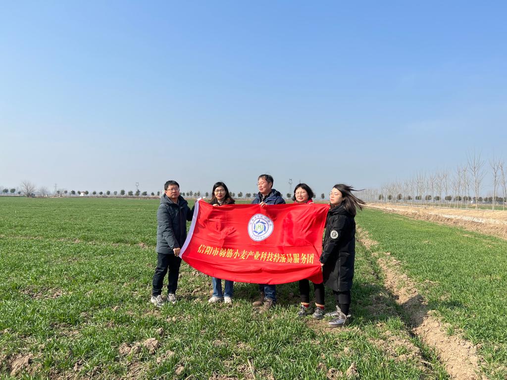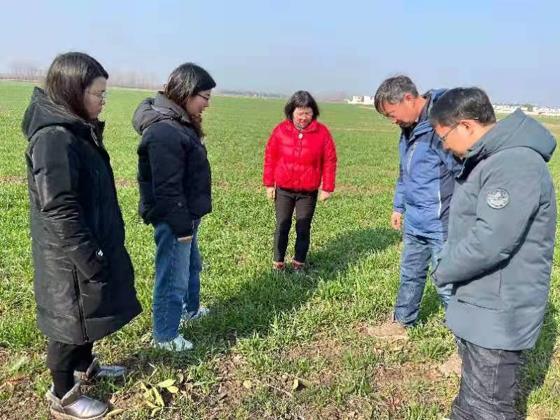 “一年之计在于春”,目前小麦生长已进入返青期,大田生产进入小麦春季田间管理的关键时期。2022年2月20日,信阳市弱筋小麦产业科技服务团成员刘红敏、肖荣英、王春生、刘书含、杨艳林在团长孙君艳老师的带领下到河南省弱筋小麦产业园、息县宏升粮食制品有限责任公司的弱筋小麦种植基地开展科技服务,并与公司技术副总潘滋亮研究员一起到田间查看了有机种植模式、常规施肥种植模式下小麦的生长态势。