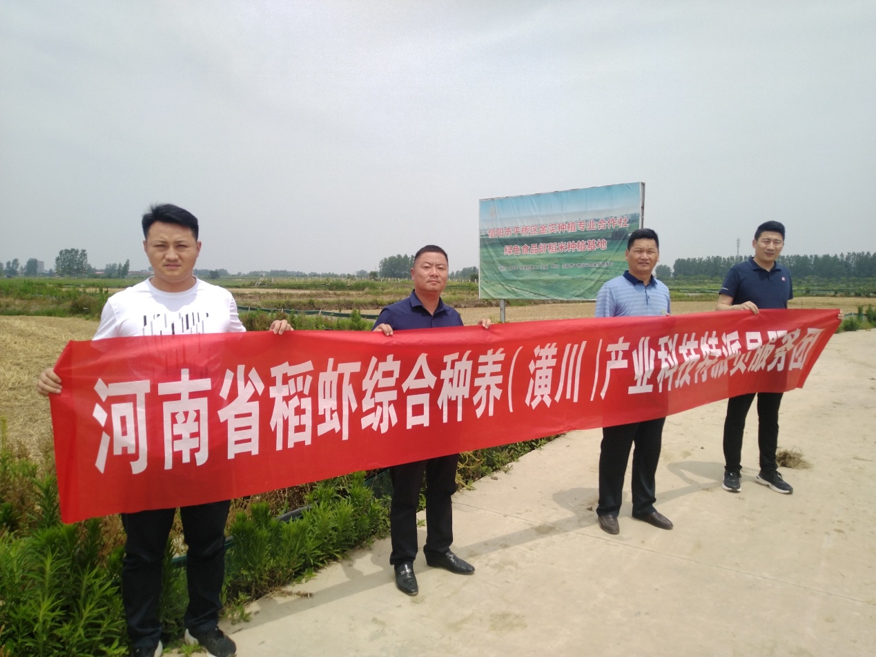服务团一行于6月9日赴信阳金实种植专业合作社落实虾苗投放前期部署工作