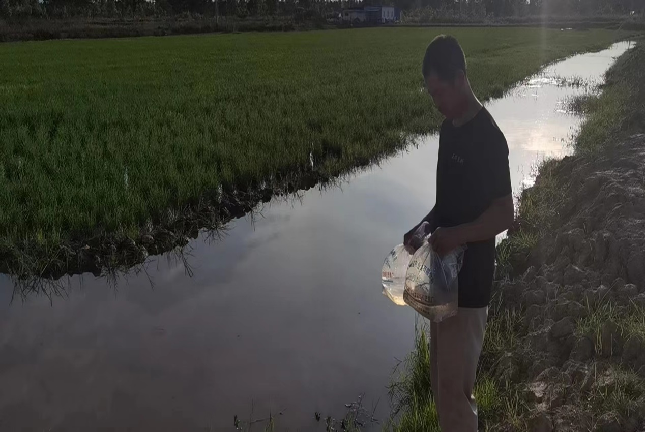 6月19日在平桥金实种植专业合作社省级稻渔综合种养示范区投放虾苗20万尾