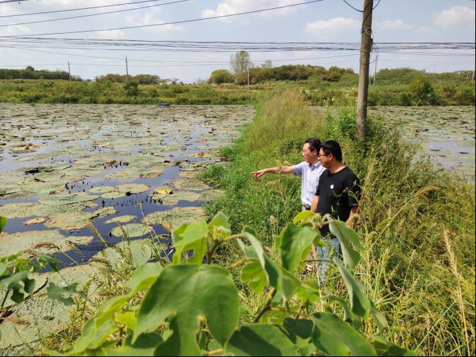 几位专家最后来到砖桥镇靓光农业科技有限公司,了解该基地目前稻虾、藕虾、芡实-小龙虾种养工作的养殖情况。近年来小龙虾养殖风险逐渐提高,为了降低风险、提高利润,稻虾养殖、莲藕-小龙虾、芡实-小龙虾、茭白-小龙虾等种养模式因其可操作性强,养殖效益好、风险低等,受到了广大种养户的欢迎,该模式产出小龙虾品质好,病害发生率低,同时养殖田中栽培的水稻、莲藕、芡实和茭白等,均能产生较好的经济效益,降低了小龙虾养殖的风险。几位专家充分肯定了该基地种养结合产出优质产品的发展理念,对该基地的标准化生产建设、生产田块的设施化改造提出了建议,企业负责人对专家的服务表示了感谢。