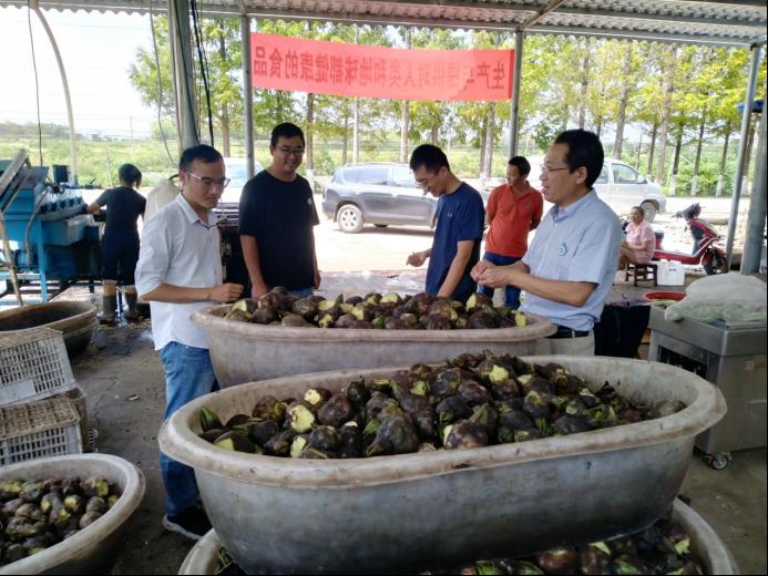 服务队在靓光公司查看芡实收获情况