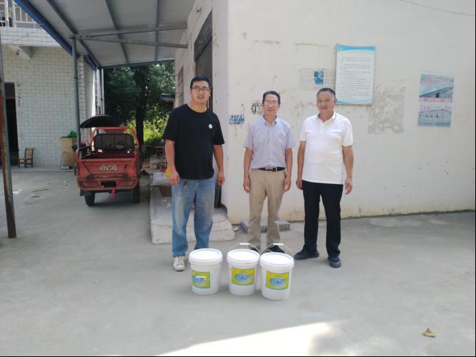 服务队向曹畈村赠送水产消毒剂
