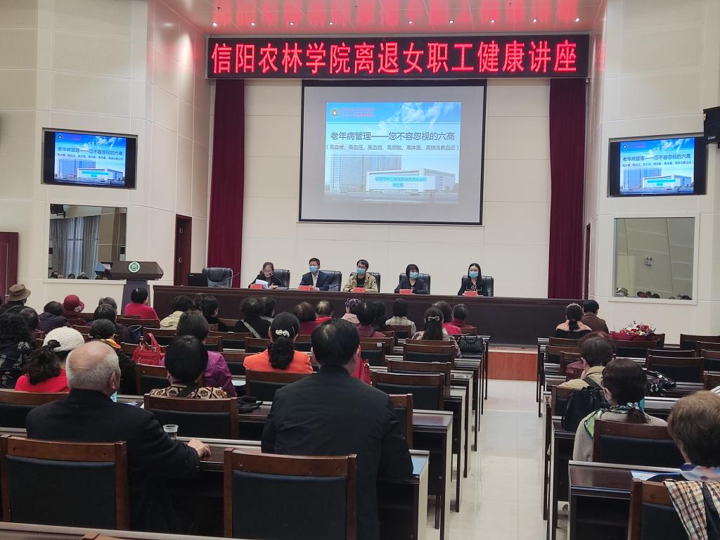 最后,退休女职工聆听了由信阳市中心医院郭磊和申红梅两位专家讲授的《糖尿病肾病科普》和《老年病管理——您不容忽视的六高(高血糖、高血压、高血脂、高尿酸、高体重、高胰岛素血症)》健康讲座,大家一致表示,两位专家的讲座既有理论的高度,又很贴近老年人的健康实际需要,有很强的针对性和实用性,犹如是一把开启健康之门的金钥匙,指导大家进一步增强自我保健意识,更加科学健康饮食和更加合理锻炼,大家相信自己的生活一定会更加幸福快乐!