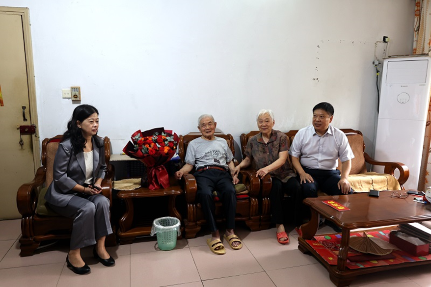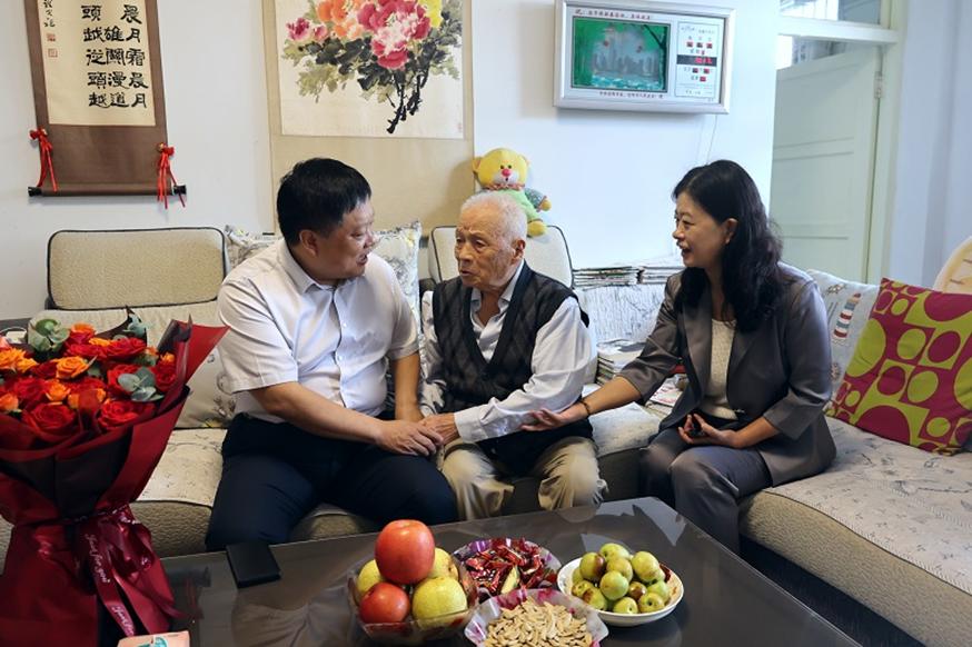 近日,在中华人民共和国成立75周年之际,beat365在线平台官网党委委员、副校长张光辉代表校党委走访慰问了新中国成立前参加工作的老干部和老党员,向他们致以崇高的敬意和诚挚的问候,感谢他们为新中国革命建设事业和学校发展作出的积极贡献。学校党委组织部和关工委工作人员陪同。