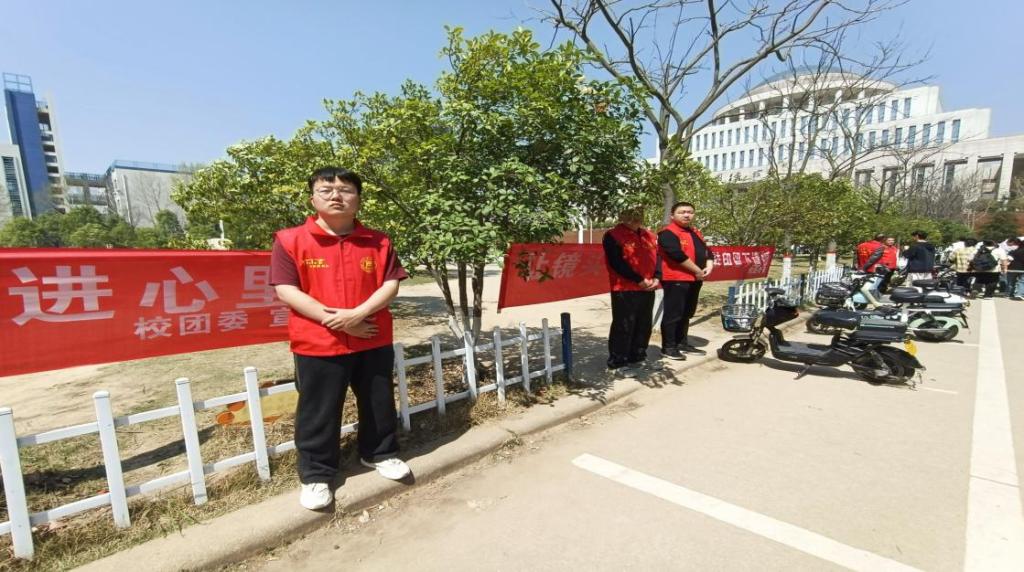 活动中,志愿者们在易发生踩踏的草地周边温馨提示、礼貌劝阻,引导同学们爱护花草,增强环保意识。同时对校园内的随意停放的单车进行集中整理、规范摆放,引导同学们在指定位置规范停车。志愿者们热情高涨、齐心协力,用实际行动传递文明出行和规范停车的理念,倡导大家共同维护校园环境,鼓励大家培养“人人都是农小青,人人争做农小青”的文明意识。