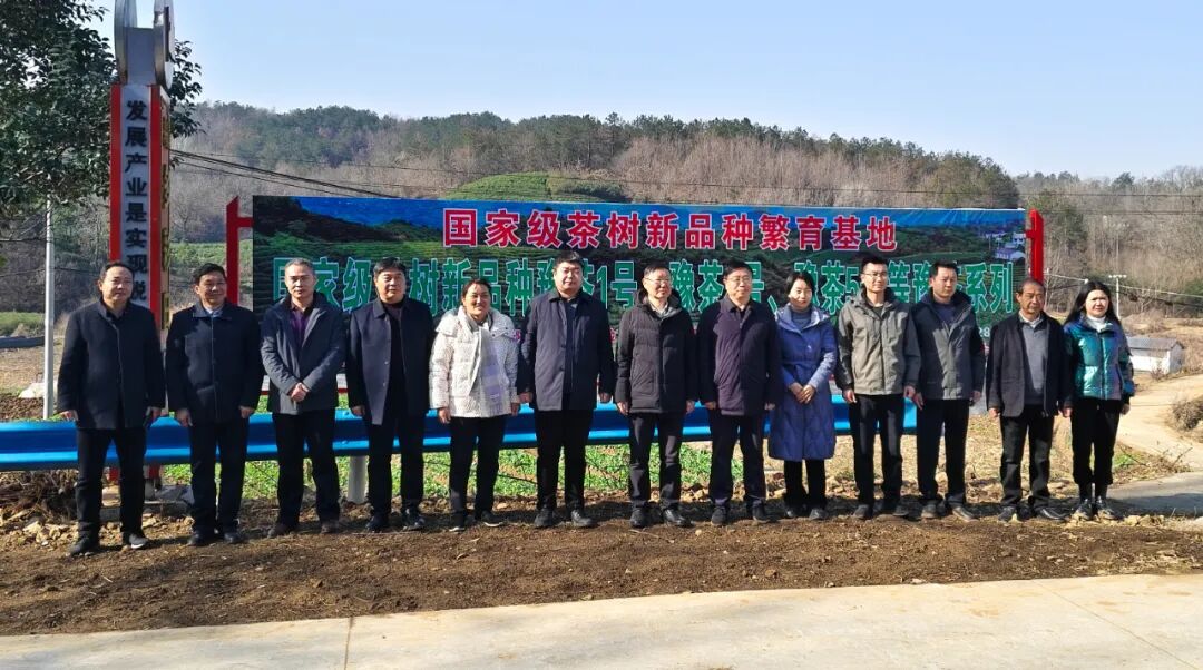 调研组首站赴杨河村茶园育苗基地,实地考察茶苗长势、品种选育及绿色防控技术应用情况,重点了解‘豫茶1号’等品种的繁育规模、管护模式及产销效益,并就茶园提质改造和良种繁育工作提出专业建议。