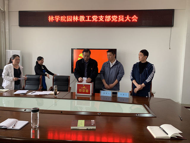 329日下午,林学院园林党支部在科技楼1C501会议室召开党员大会,选举产生新一届支部委员会。会议由林学院党总支书记(原林学教工党支部书记)赵师成主持。
