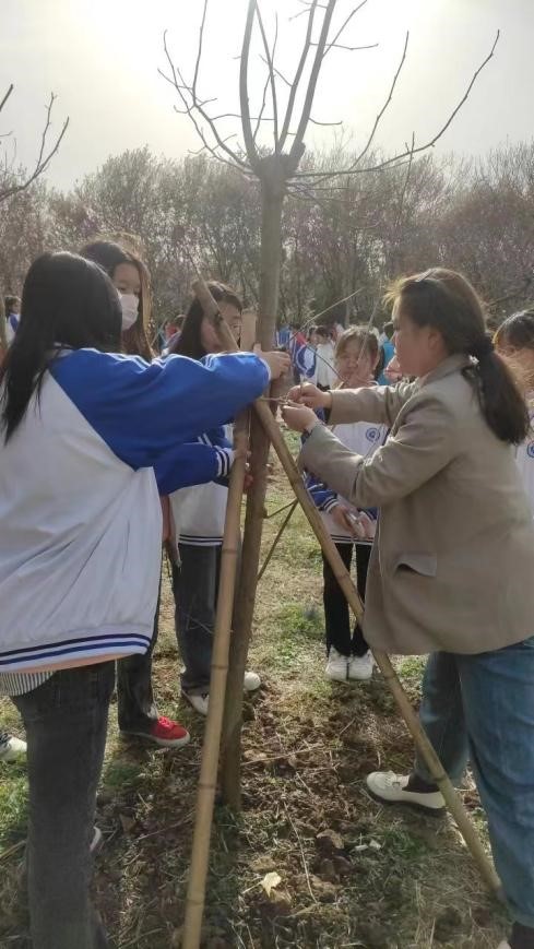 植树现场党旗同院旗在艳阳下烈烈招展,每一次飘扬都仿佛在深情诉说:旗在,人在,精神在!在党支部书记肖亮的带领下,党员志愿者撸起袖子弯下腰,扑下身子拿起锹,扶植树苗,挥锹铲土,培实树根,浇水育苗,大家热情洋溢,互相配合,干劲十足,一派热火朝天的劳动场面,充分发扬不怕苦,不怕累的精神,忙碌的身影成为校园里一道亮丽风景,数小时后,一株株错落有致的树苗迎风伫立,尽显勃勃生机。。(撰稿/林学院 赵赟 摄影/林学院 赵赟)