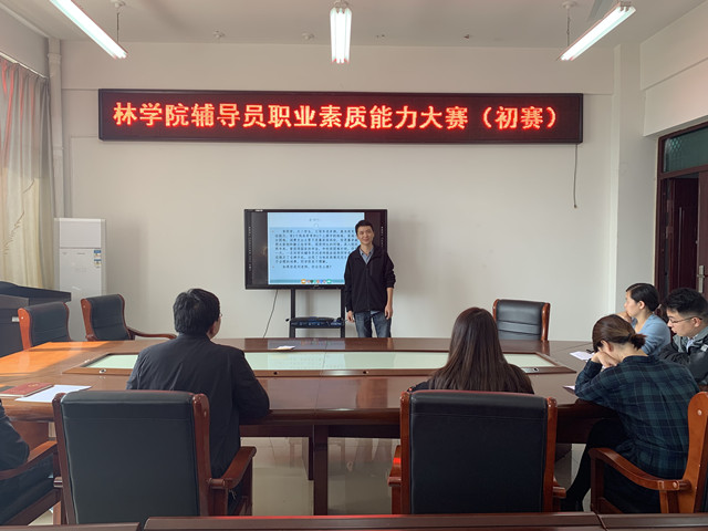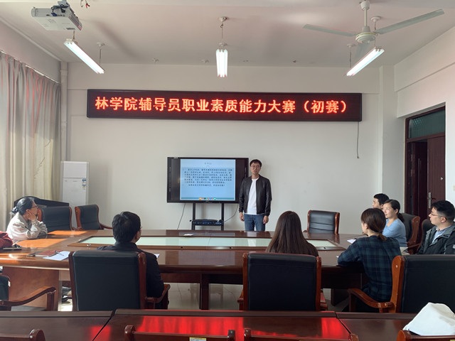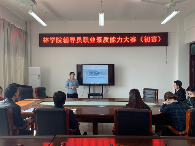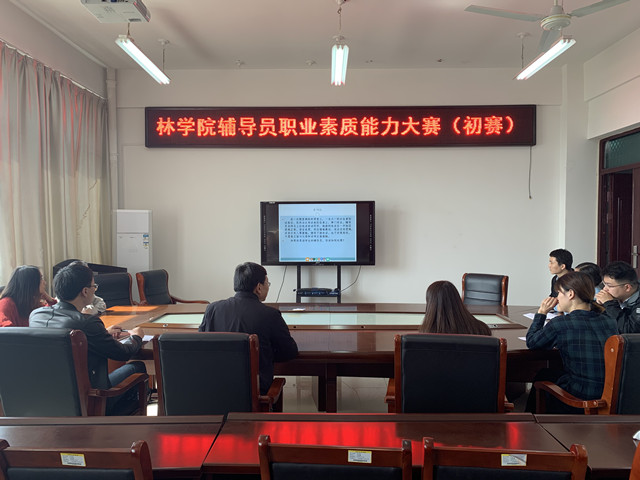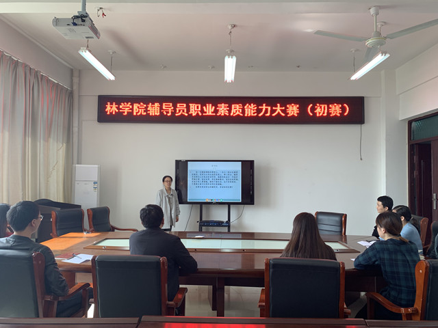 为进一步提升辅导员职业素质能力和工作水平,加强辅导员队伍建设,1030日下午,林学院在科技楼1C501会议室组织开展辅导员职业素质能力大赛(初赛),林学院学工组全体人员参加。
