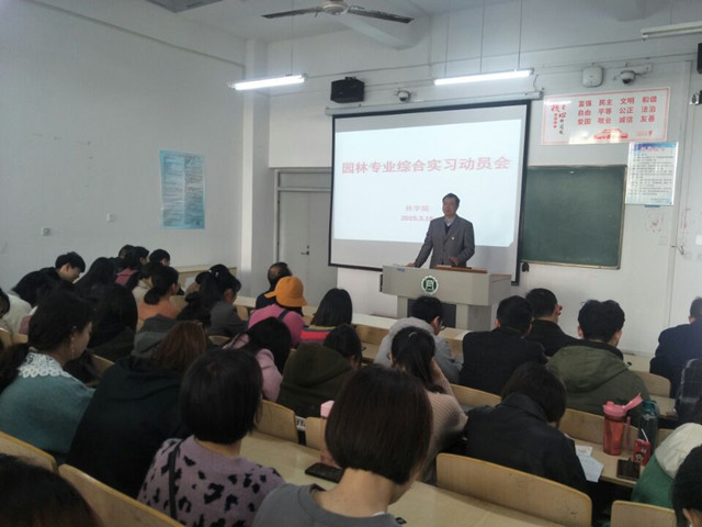 为了组织好本次实习,林学院从2月底就开始了实习的准备工作,多次组织召开实习专门会议,从实习地点的选择与落实,到学生的食宿、交通的安排,从学生实习前的动员,到实习环节的质量保证都作了周密详细的计划和安排。3月18日上午,林学院专门组织实习师生召开实习动员大会,院长孙耀清,党总支书记赵师成分别为学生做了专业思想教育和实习动员,并就实习内容和实习生活等内容进行了安排部署。此外,学院还专门制定了《园林专业综合实习计划》及相应的安全和应急管理措施,确保了此次实习稳步、安全、有序的完成。