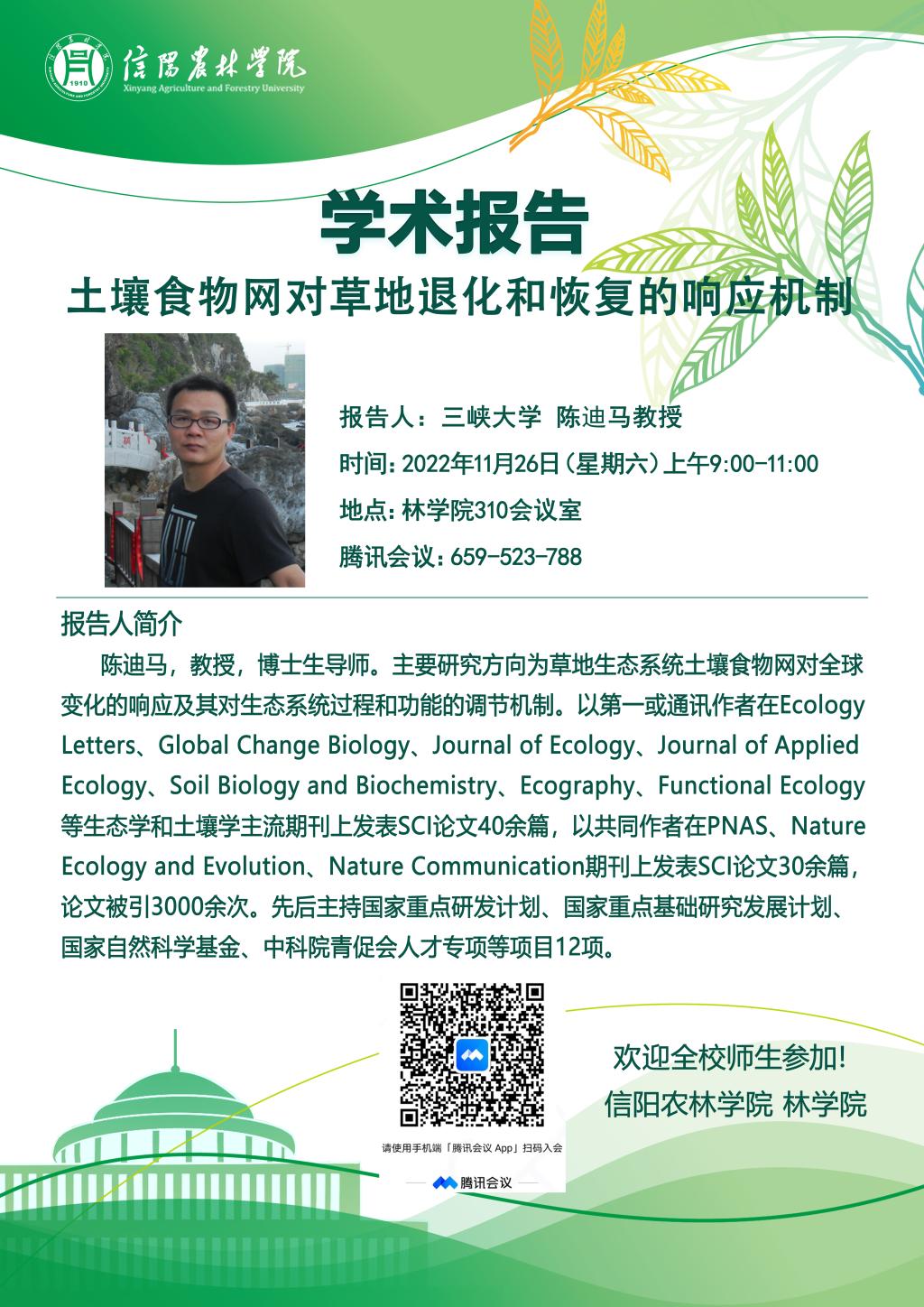 林学院“青山讲坛”系列学术报告:土壤食物网对草地退化和恢复的响应机制