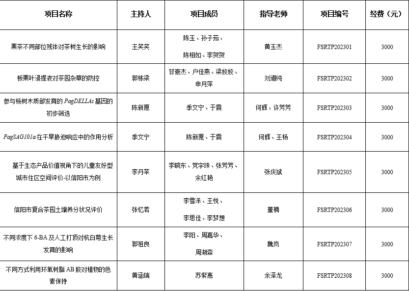 按照《林学院本科生科研训练项目管理办法》,根据本科生科研训练项目立项评审会专家意见并报请林学院本科生科研训练项目工作小组讨论,林学院对2023年度申报的8个本科生科研训练项目进行了审查和认定,现将立项意见予以公示。林学院2023年度本科生科研训练项目立项名单(排名不分先后):