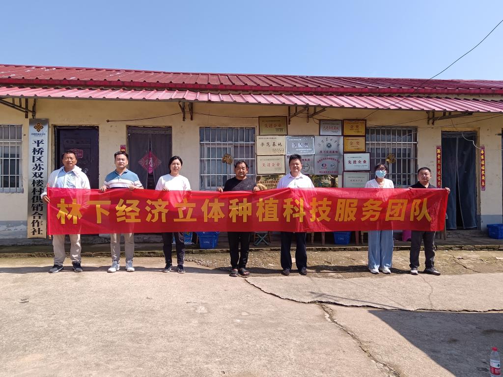 为了提高林下经济立体种植效益,2023年6月20日,林学院李文杨副院长带领林下经济立体种植科技服务团队成员黄玉杰副教授、郑伟博士、何辉博士和陈玉平博士赴信阳市平桥区苏双楼村开展科技服务。
