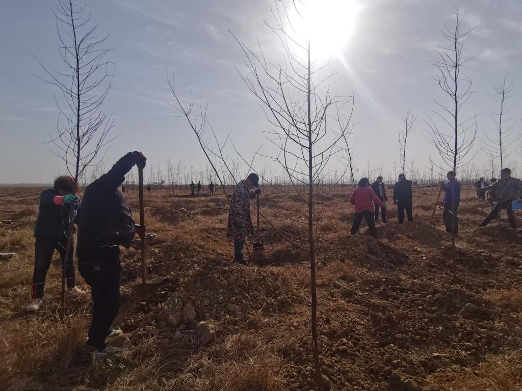 在出山店水库库区水淹地冬季造林现场,我院教师正向栽植民众传授冬季树木栽植技巧。“冬季造林气温低、蒸发量小,苗木处于休眠状态,此时栽植能提高成活率,但技术要点可不能马虎。”魏老师边说边示范如何深挖树坑,确保根系舒展,又详细讲解了填土、浇水以及后期管护的关键环节。栽植民众和企业相关负责人听得聚精会神,不时提出问题,现场学习氛围浓厚。