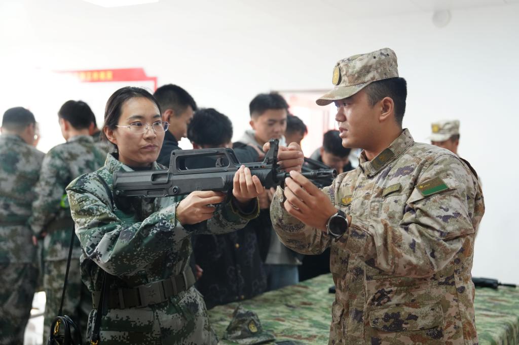 此次活动在部队官兵的带领下,师生们首先共同观看部队的宣传片,参观武器装备、器材室、官兵宿舍、文化活动室、训练场地等基础设施,观摩战士们熟练专业的轻武器的拆卸与组装和精湛的实操技能,在军队文化室了解部队的发展历程和荣誉勋章。最后师生们与官兵们进行了热情交流,了解他们的日常训练、部队生活和心路历程,感受部队的优秀文化和军人的优良作风。