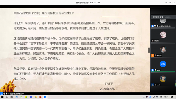 7月13日下午,林学院团总支学生会全体成员通过腾讯会议平台召开线上会议,集体学习了习近平给复旦大学《共产党宣言》展示馆党员志愿服务队全体队员的回信和习近平总书记给中国石油大学(北京)克拉玛依校区毕业生的回信。林学院教师付满意、胡强及全体团总支学生会成员参加本次会议,会议由胡强老师主持。