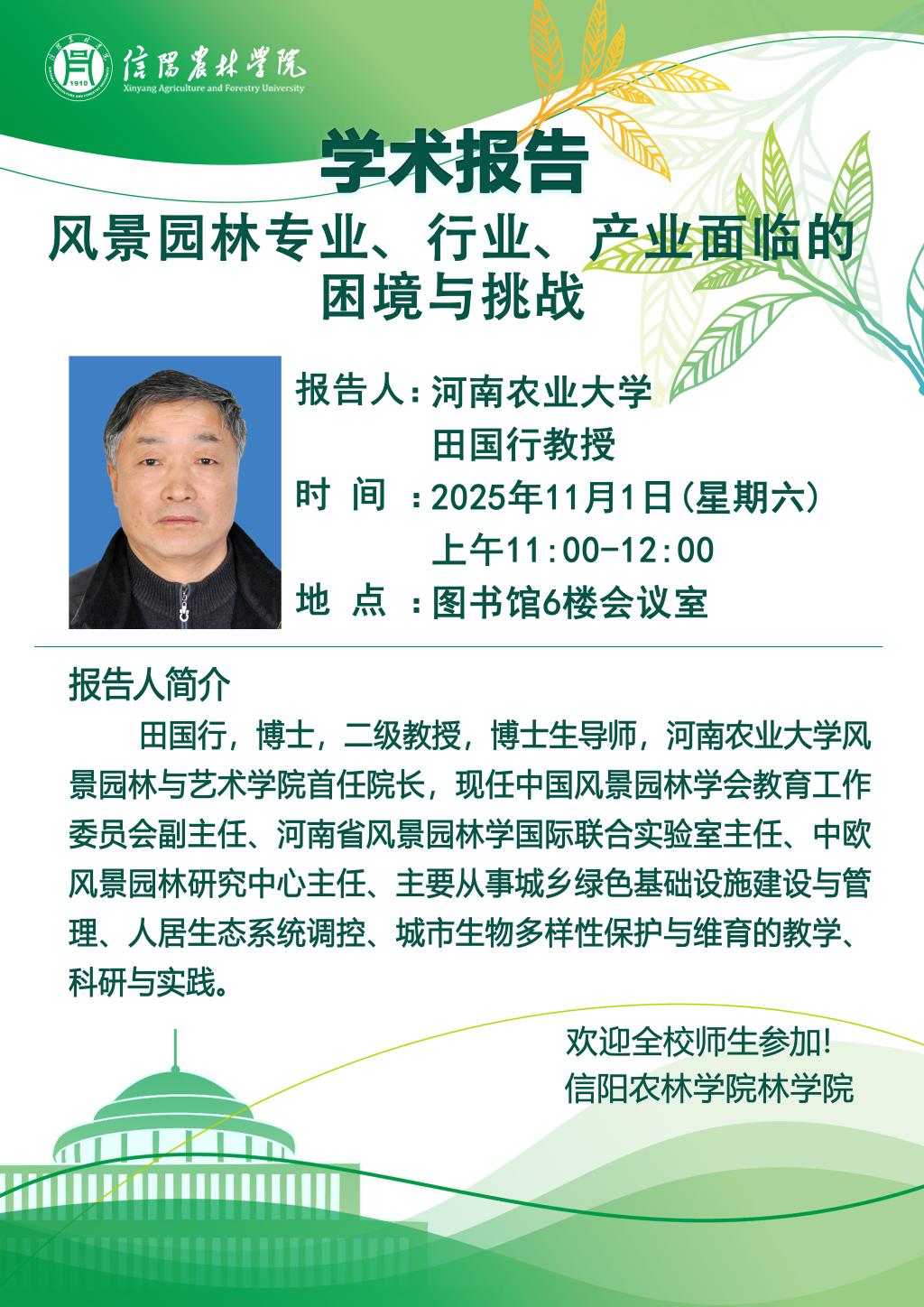 林学院“青山讲坛”系列学术报告:风景园林专业、行业、产业面临的困境与挑战