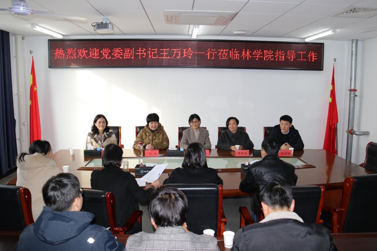2024年12月5日,党委副书记王万玲到林学院调研指导工作,党委委员、党委宣传部部长简频捷、学生处处长靳潢、校团委书记朱同留、心理健康教育与咨询中心主任朱建梅陪同调研,林学院领导班子、专职组织员、办公室主任、专职辅导员参加此次调研座谈会,会议由林学院党总支书记黄春晖主持。