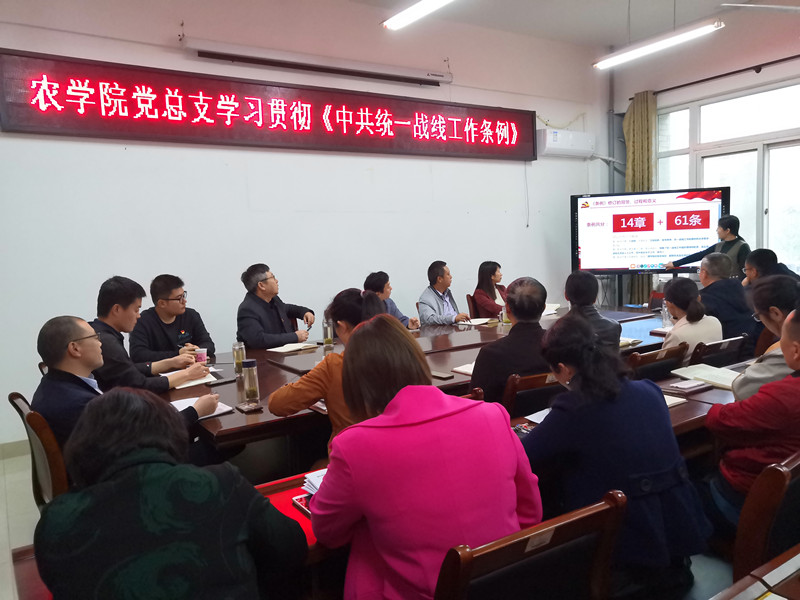 农学院党总支书记李传保表示,《条例》是做好统一战线工作的重要指导性法规,它的修订充分体现了新形势下党中央对统战工作的高度重视,彰显了新时期统战工作的重要性。根据学校统战工作的相关要求,农学院党总支已经制定了2021年《条例》及党内法规学习方案,把学习宣传贯彻《条例》作为当前和今后一个时期的重要政治任务,原原本本的学,确保学深悟透,更好的武装头脑、指导实践、推动工作,为学校顺利通过合格评估凝聚力量,以优异的成绩庆祝建党100周年。