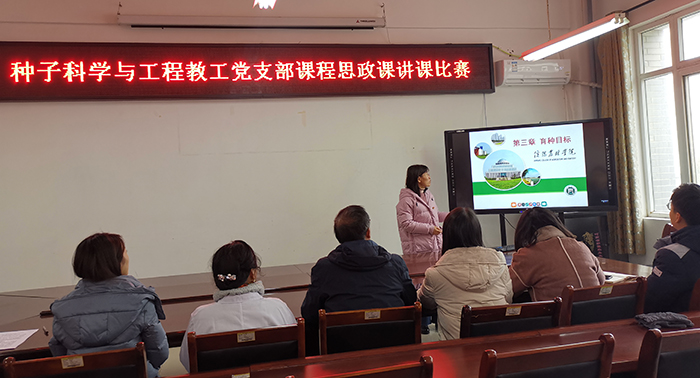 为落实立德树人根本任务,将思政育人融入到课程之中,切实把思想政治工作贯穿教育教学全过程,全面提升教师党员的教学能力和水平。12月17日,种子科学与工程教工党支部在2A316开展了课程思政讲课比赛活动。