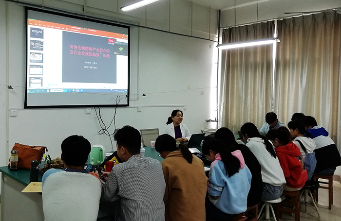 2020年10月27日,我院植物保护教研室邀请郑州有害生物防治协会副会长、郑州百思特虫控有限公司总经理李维珍作学术报告,教研室乔利、潘鹏亮和耿书宝博士及2018级植物保护、2018级植物保护(航空植保技术)和2020级植物保护(专升本)共220余人参加。由于参加学生众多,此次学术报告采取线上线下结合的方式进行,分四个会场,主会场设在我院2A506,由李维珍总经理进行现场报告,并利用腾讯会议同步直播到其他三个分会场。