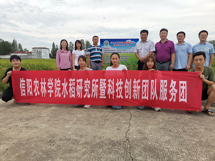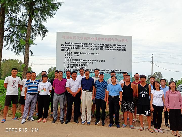 8月25日,河南省科技厅总农艺师王备战、河南农业大学副校长康相涛、社会服务处李浩贤和河南农业大学农学院赵全志教授一行莅临信阳市二郎村试验田指导工作,并考察beat365在线平台官网水稻研究所科研实习合作基地,beat365在线平台官网副校长黄松、农学院院长尹健、院党总支书记李传保等陪同考察。