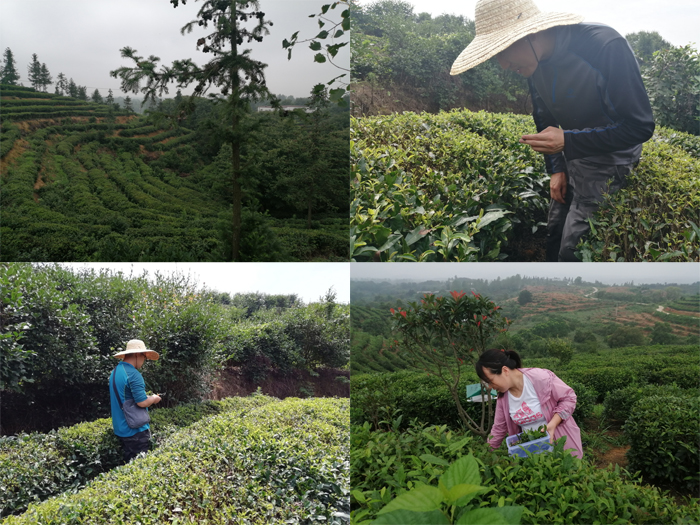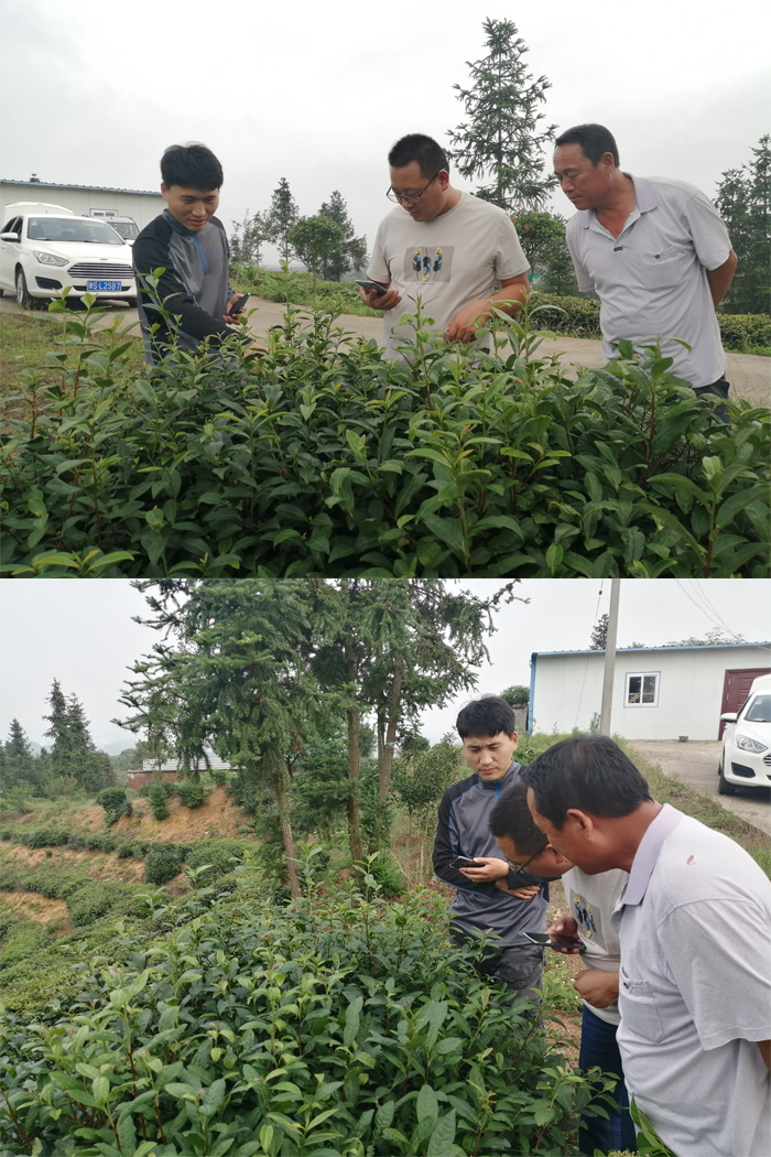 2020 年 7 月 4 日,我院昆虫科研小组成员耿书宝、金银利和洪枫三位老师利用周末时间一早七点即前往罗山县亿峰生态林业开发有限公司和信阳申林茶业开发有限公司所属茶园开展一周一次的茶树常见害虫发生情况调查工作。
