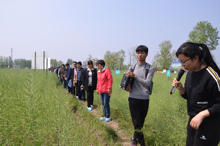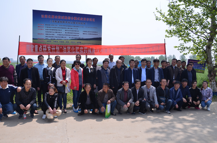 4月12日,我院教师肖荣英主持的国家重点研发计划“油菜化肥农药减施技术集成研究与示范”项目的子课题“河南区域冬油菜化肥农药减施技术集成示范”田间观摩培训会在光山县召开。来自中科院油料所、陕西省杂交油菜中心、河南省农科院等地的国家重点研发计划“油菜双减”项目相关专家、国家油菜产业体系相关岗位科学家和部分综合试验站站长及骨干莅临现场指导,我市各县区农业技术推广部门负责人、光山县部分合作社负责人、新型职业农民代表等共计80余名人员参加了现场观摩会。观摩会由项目负责人肖荣英主持。