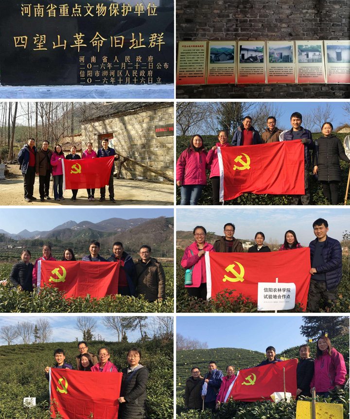 在参观学习新五师兵工厂之后,为了更好地开展科研活动,为学校建设添砖增瓦,党员们深入到东双河镇黄土门、浉河港镇马到岭村、浉河港镇白庙村、董家河乡清塘村和董家河乡陈湾村的五个茶园,同当地茶农认真交流,了解茶园害虫的越冬情况,并探讨了一些冬季茶园的管理知识。初步与茶农建立了稳定的联系,为后续科技活动的开展打下了牢固的基础。