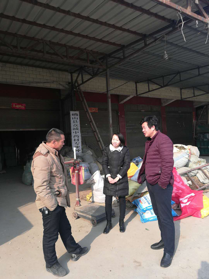 服务队一行首先来到确山县任店乡确山县众城中药材种植专业合作社,调研该合作社2018年一年内中药材苍术、夏枯草、艾草等的栽培、收购、销售情况,并提供关于苍术高垄栽培、分株繁殖规范化栽培技术等技术指导。并向合作社发放了苍术栽培技术手册等相关的技术资料。