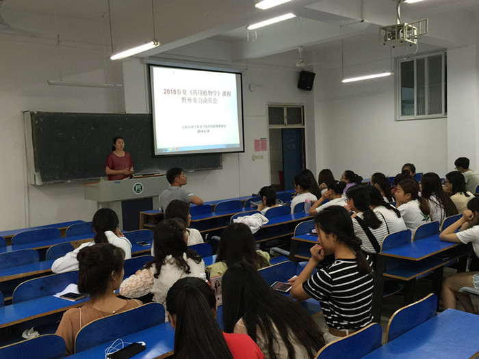 本次实习内容主要包括实习动员、野外识别采集药用植物、标本压制、考核及撰写实习报告等。实习动员会于18日在A105举行,张艳玲老师就实习目的与要求、野外实习安排、考核办法、野外注意事项、标本制作方法等方面做了详细介绍,特别强调了实习过程中的安全问题,禁止采集过程中乱吃乱尝以防中毒。实习中,以班级为单位由带队老师选择路线进行野外教学,指导学生认识常用药用植物,观察其生长环境并讲解所属科的主要特征,4-5人一组采集并及时压制药用植物标本。最后,通过鉴别考核了解了同学们对于本次实习药用植物掌握情况。