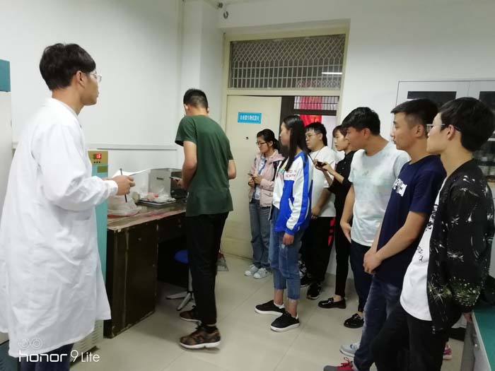 活动刚开始,徐老师首先给大家介绍了药用植物研究的现状、发展前景以及中药质量检测所包含的主要内容,从而给大家引出相关实验仪器在检测和研究过程中的应用。然后,徐老师结合实际带领大家深入各个实验室,依次给同学们展示并介绍了超声清洗器、旋转蒸发仪、冷冻干燥机、烘箱、超净工作台、索氏提取器、紫外分光光度计等基础设备的使用原理和操作方法。并重点介绍了气相色谱-质谱联用仪等大型检测设备的基本原理,以及仪器在挥发油组分分析等方面的应用。在活动的最后,徐老师鼓励大家在今后的学习过程中,理论联系实际、积极思考并提出相关问题,同学们认真听取并与老师积极互动。